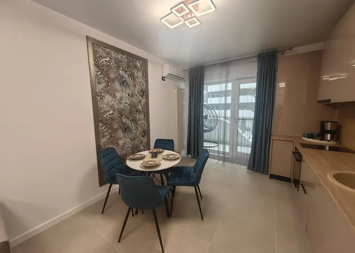 Az 1 szobás Apartament Ella Odyssey Năvodari hozzáférést biztosít wellness szalonhoz is, ami még kellemesebb élményt nyújt. A környék látnivalói közé tartozik a nagyjából 25 perc sétára található a Năvodari Holiday kemping, a Lake Tasaul pedig körülbelül 4 km-re található a 60 m^2-es apartmantól.